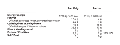 natural fragments. May contain traces of peanuts and sesame. Store in a cool and dry place.Organic Vegan Protein Bar - Source of Protein
